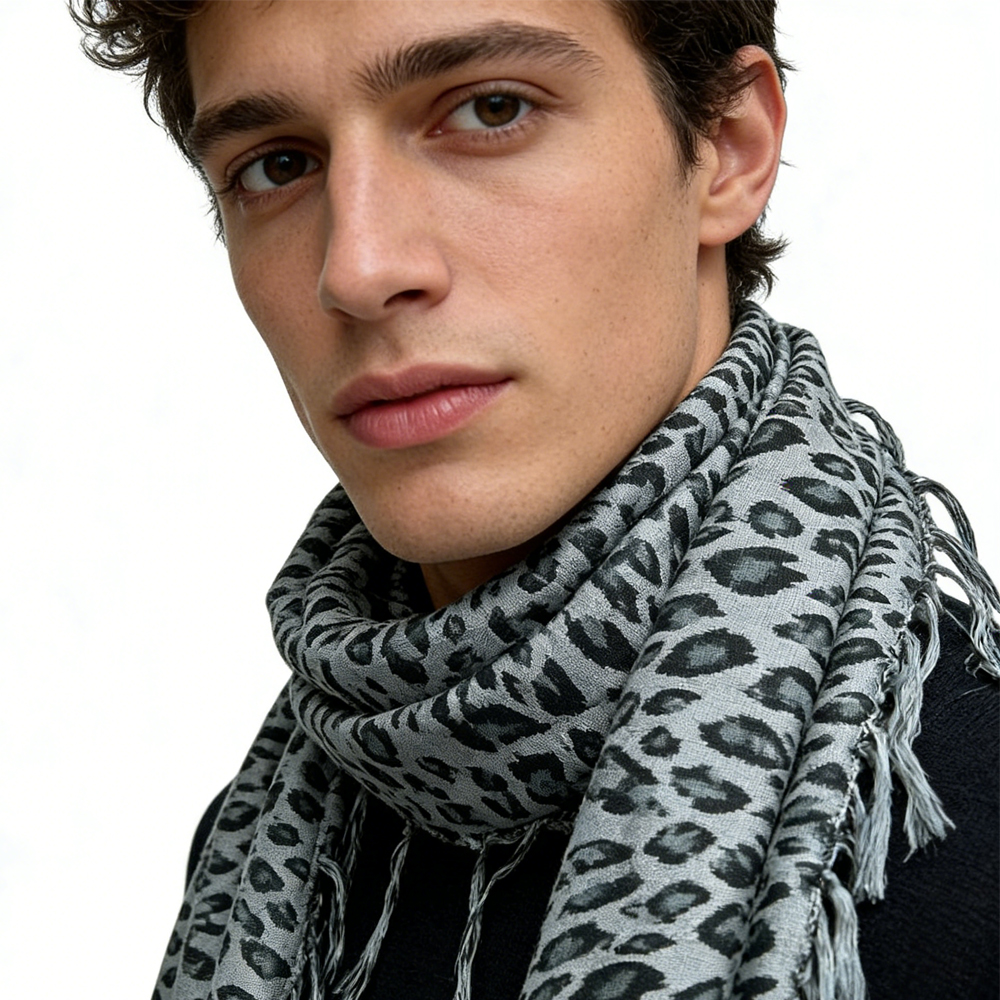 Refresh your wardrobe today! Limited sizes available. Order your this product Scarf,Grey Leopard Square Scarf ,Luxe Look For Evening Wear,Scarf,vacation,daily Life,evening Party,Office Appropriate Subtlety For Women Men now and experience the difference quality menswear makes!