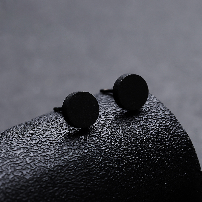 Cross-border Round Stud Earrings Glossy Black For Men
