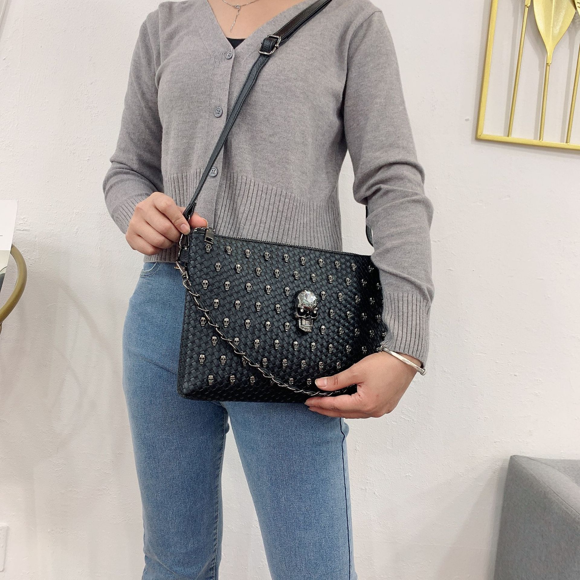 Looking for the perfect clutch? Complete your look with our stylish Inclined Span Of Large Capacity Rivet Clutch Bag. The perfect accessory for fashion enthusiasts who value style and practicality who value both fashion and functionality.