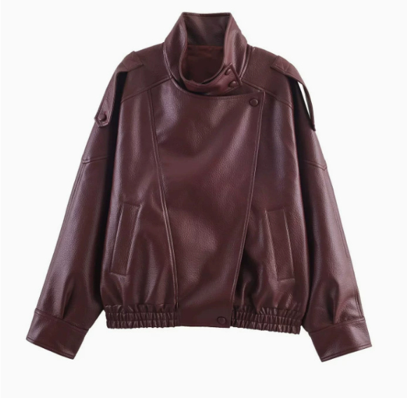 Womens Fashion Faux-leather Jacket With A Stand-up Collar