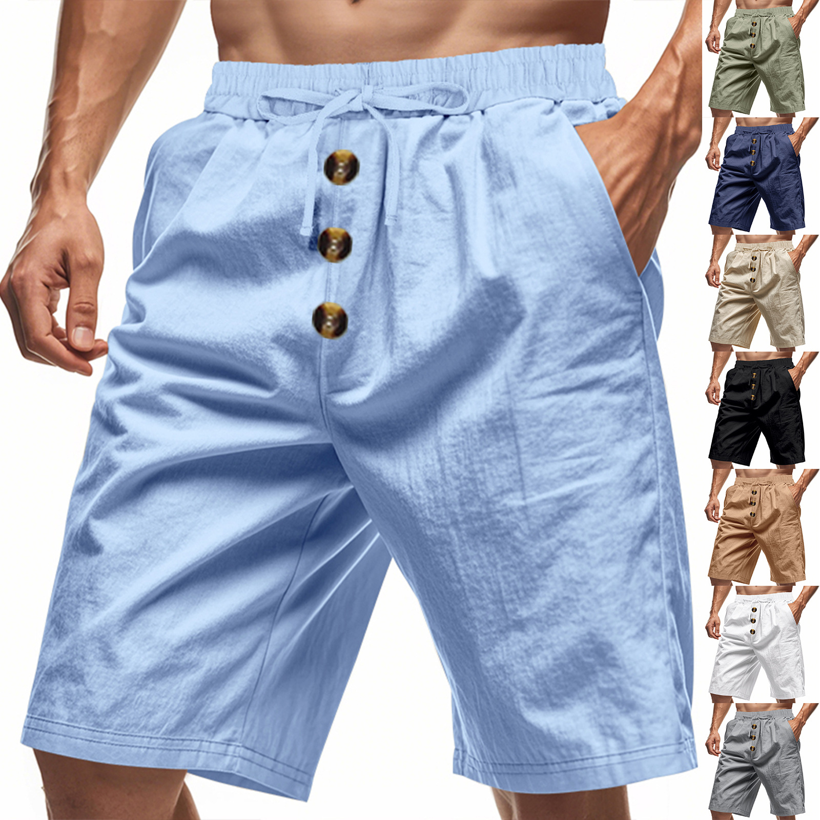 Looking for the perfect sports shorts? Elevate your wardrobe with our Mens Loose Linen Beach Casual Washed Button Cropped Sports S…
