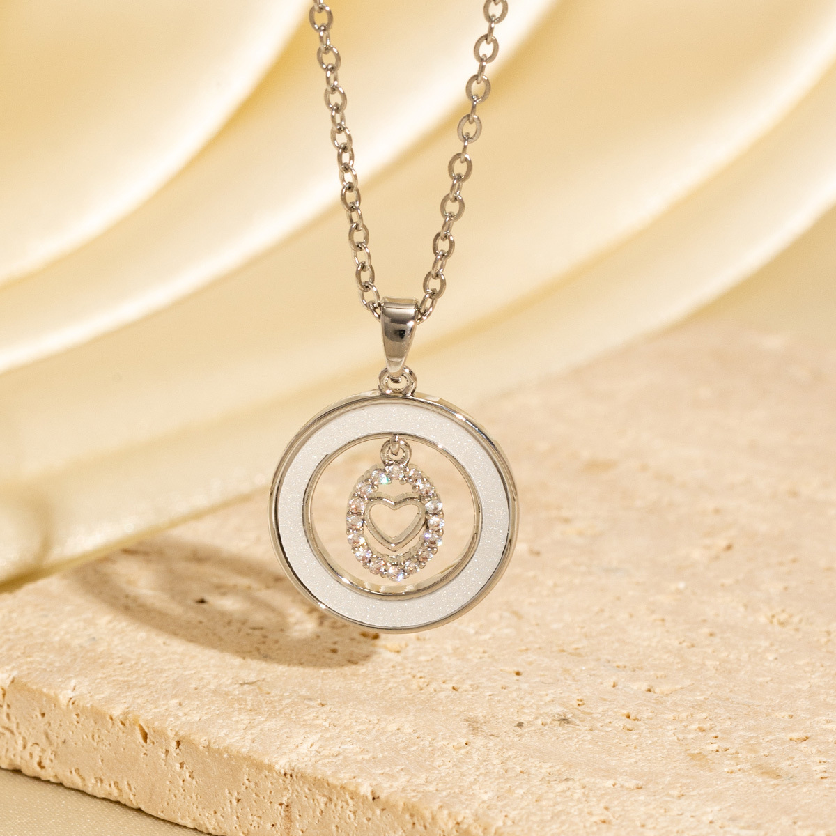 Round Hollowed-out Heart Oil-drip Necklace