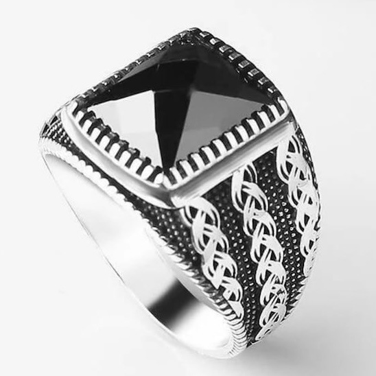 Gemstone-inlaid Alloy Ring For Men In European And American