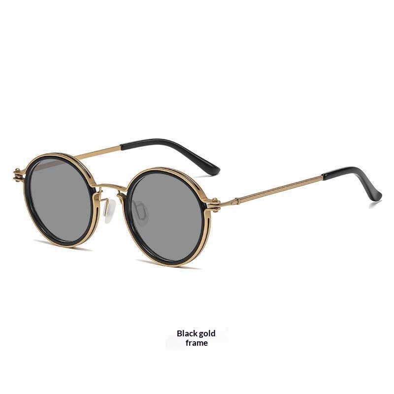 Mens Round-frame Punk-style Metal Sunglasses