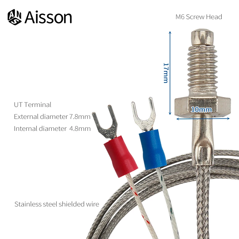 M6 Screw K/E Type Thermocouple Probe Sensor 1M 2M 3M 4M 5M