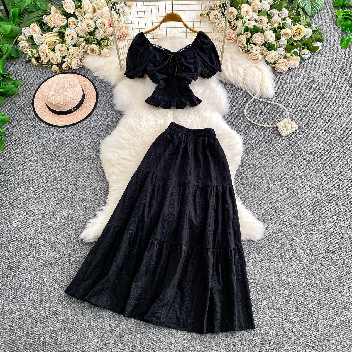 Our Hollowed-out Embroidered V-Neck Shirt With Ruffled Long Skirt is engineered for quality-conscious consumers who demand reliability, style, and performance. Compatible with popular devices and built to last.
