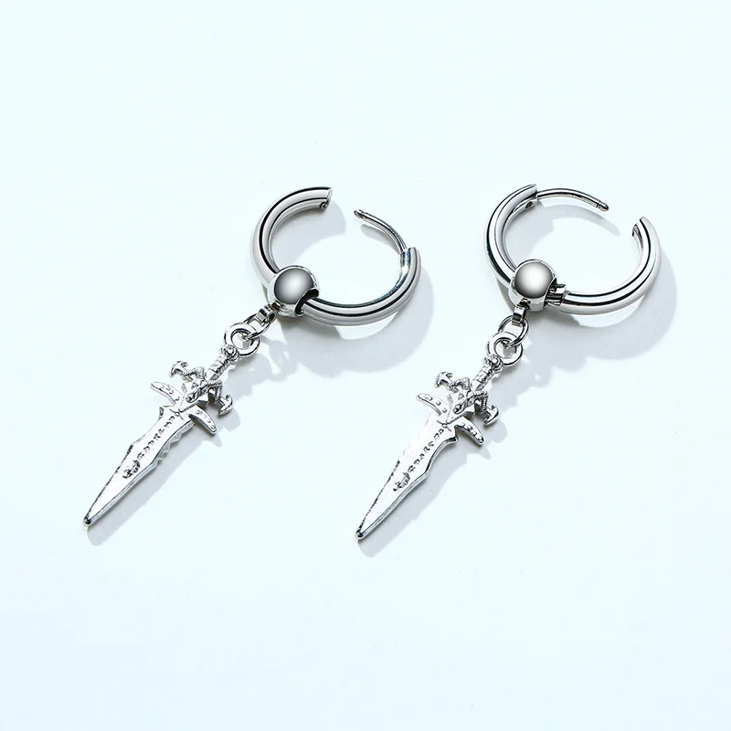 SINGLE SILVER COLOR EARRING MEN STAINLESS STEEL SWORD