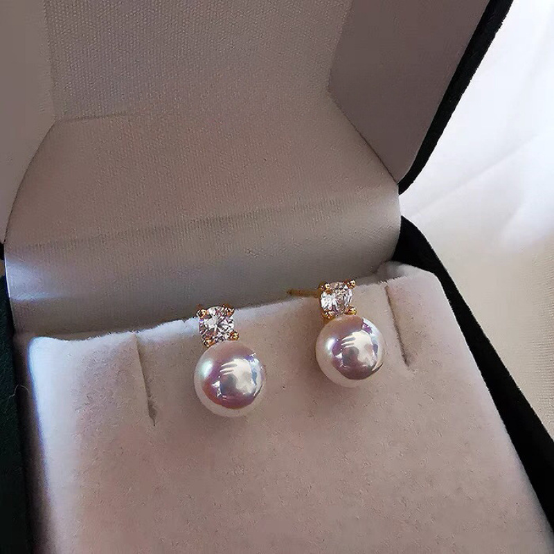 Womens Pearl Stud Earrings In Sterling Silver With Intense Brilliance