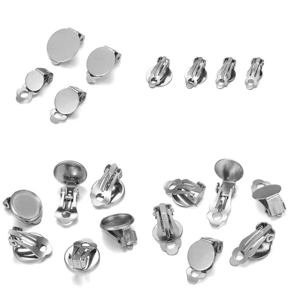 10pcs 8-14 mm Stainless Steel Round Flat Ear Clip Base